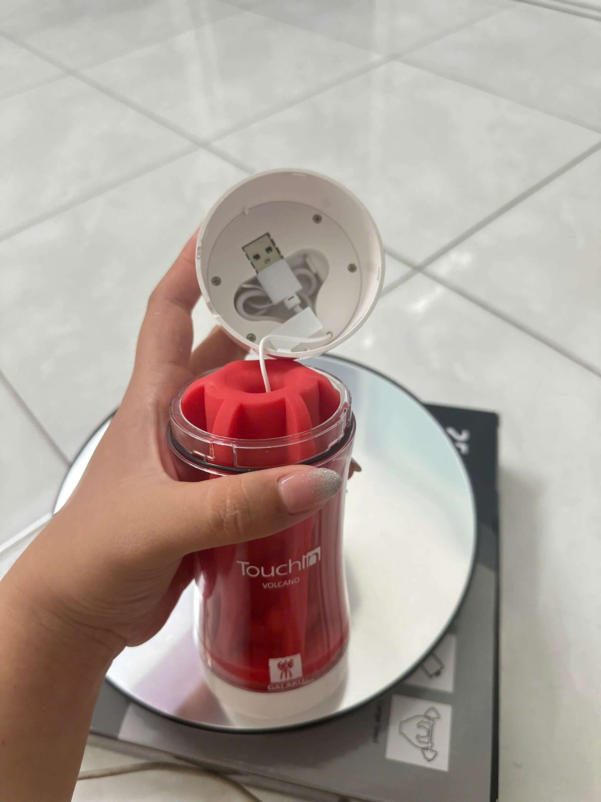 Dùng sạc có sẵn trong nắp cốc